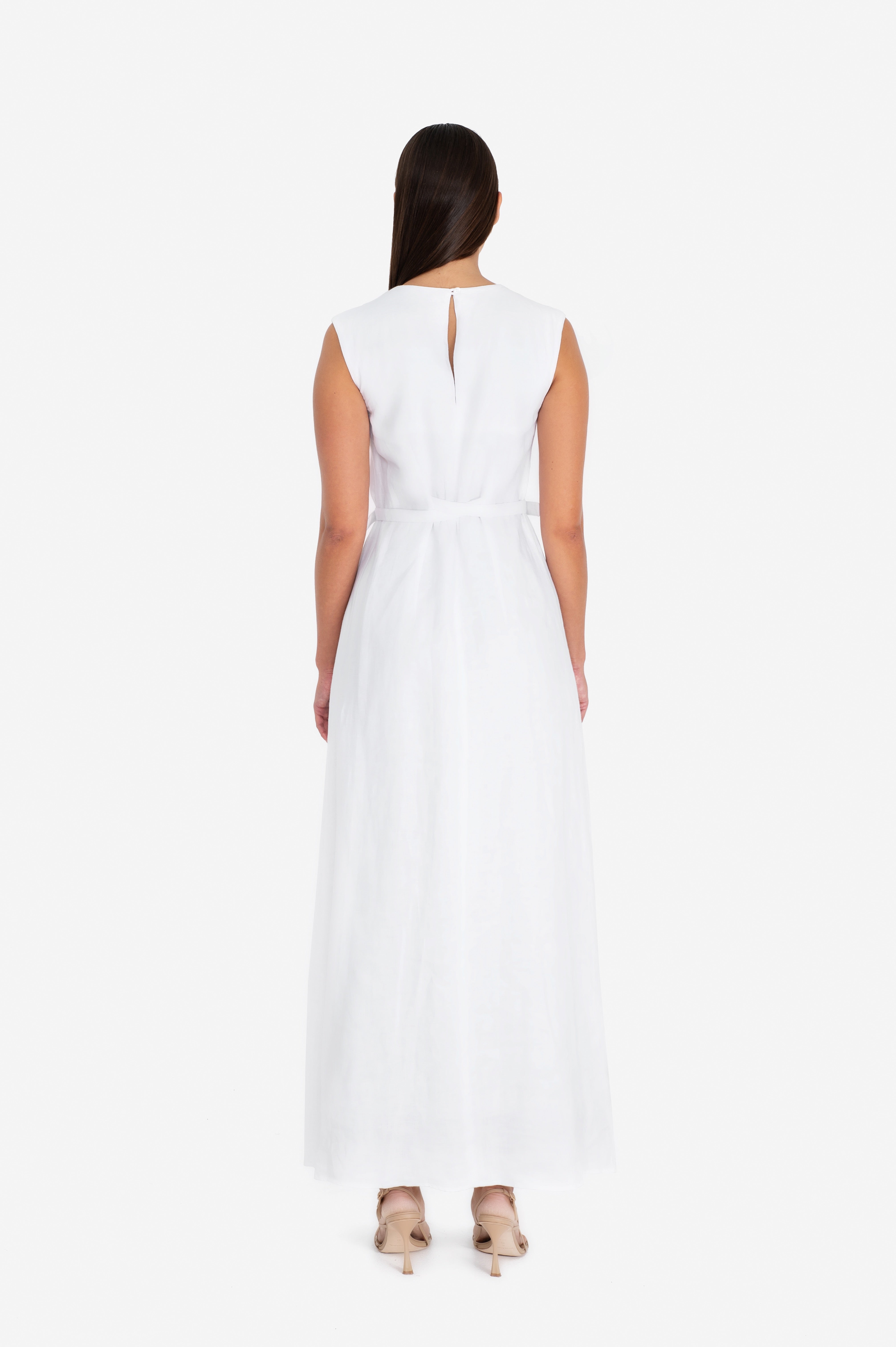 The Marion Dress is the definition of effortless Scandinavian chic. Crafted from breathable linen, this sleeveless maxi dress features a clean silhouette and an adjustable waist with button details for a tailored fit. Designed for versatility and timeless elegance, the Marion Dress transitions effortlessly from day to evening, perfect for warm summer days as well as city strolls. A timeless blend of simplicity and chic sophistication.