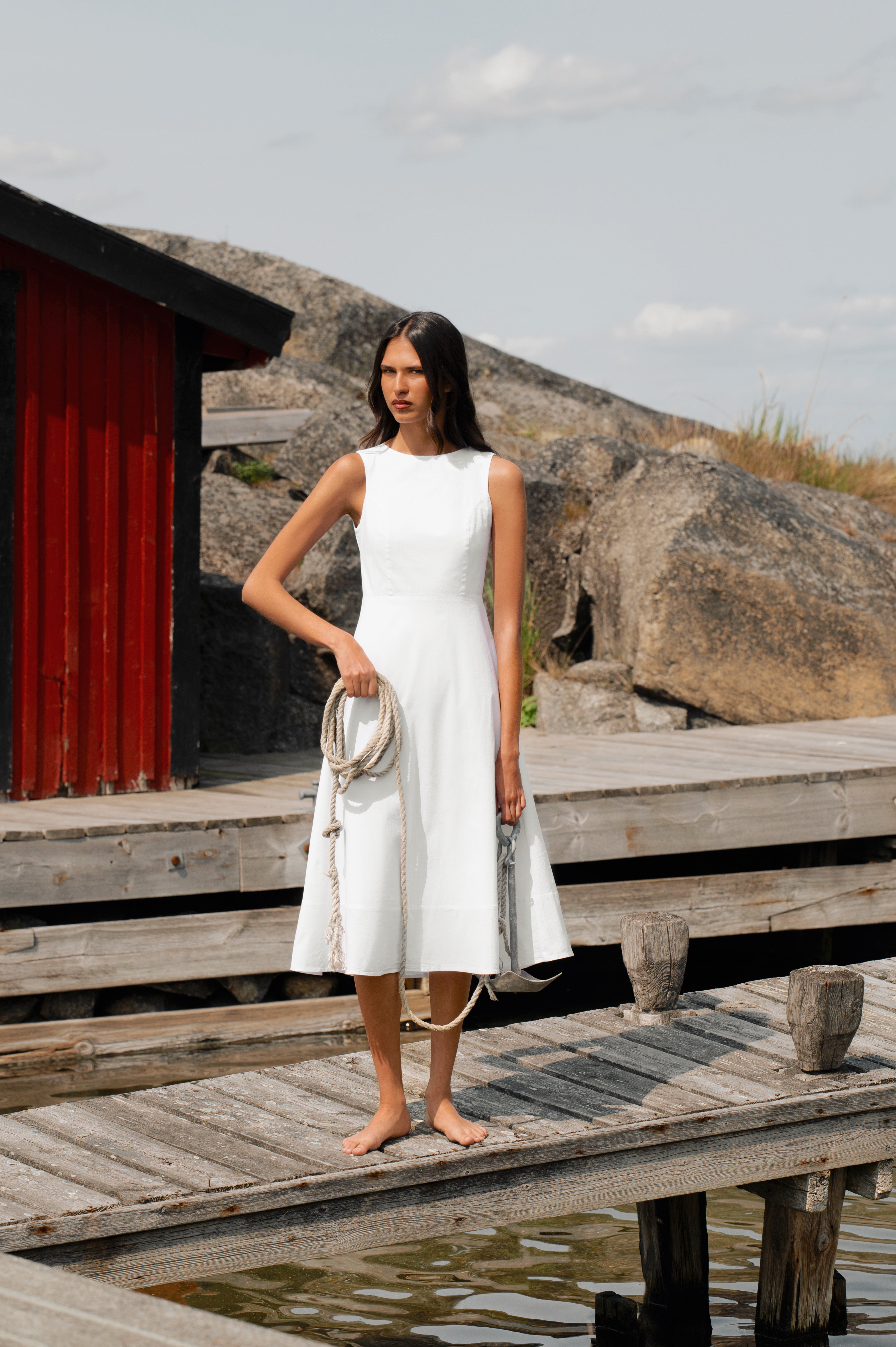 The Mirella dress is a modern summer staple with a refined silhouette. It shapes the waist before flowing into a softly flared skirt that moves effortlessly with every step. Featuring an open back with a delicate button and hidden zip closure, Mirella offers just the right balance of structure and ease. Light and airy, it’s made for golden hour dinners, coastal escapes, and everything in between. A timeless piece you’ll reach for season after season.