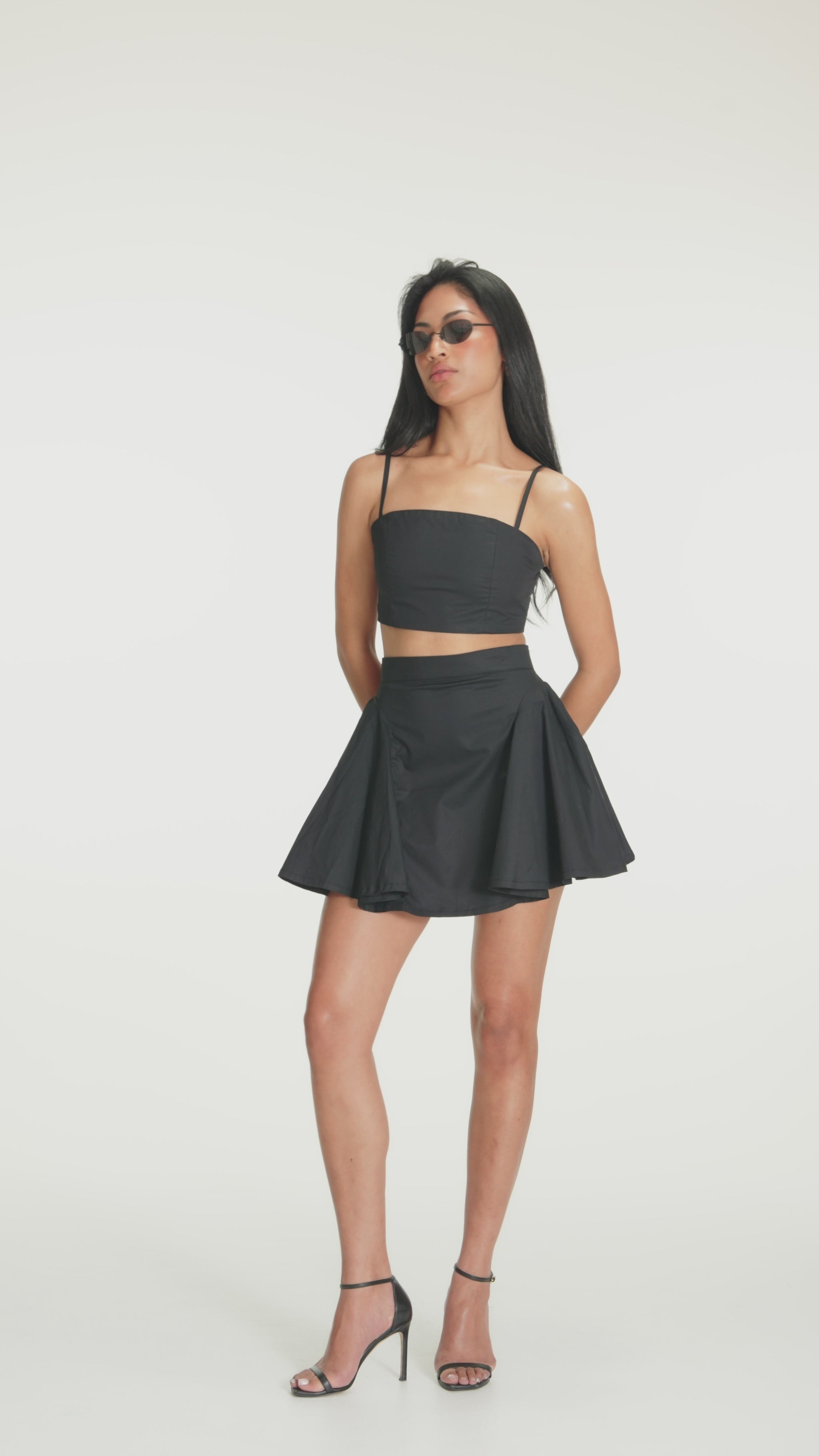 The Rosina Mini Skirt is a modern take on timeless femininity. Sitting high at the waist, it falls into a softly structured mini silhouette that moves effortlessly with every step. Crafted from 100% cotton, it holds its shape beautifully while remaining light and comfortable.