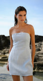 The Lili Dress is crafted from 100% linen and lined in 100% cotton, creating a breathable yet softly structured feel. Designed in a feminine mini silhouette, it blends natural elegance with warm-weather ease.